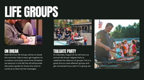 • Guided & Growing: A Journey in LifeGroup LeadershipWhether you are currently leading a LifeGroup or exploring the possibility that God may be calling you to this role, this 9-week training class is designed to equip you with the tools and confidence to lead with excellence.